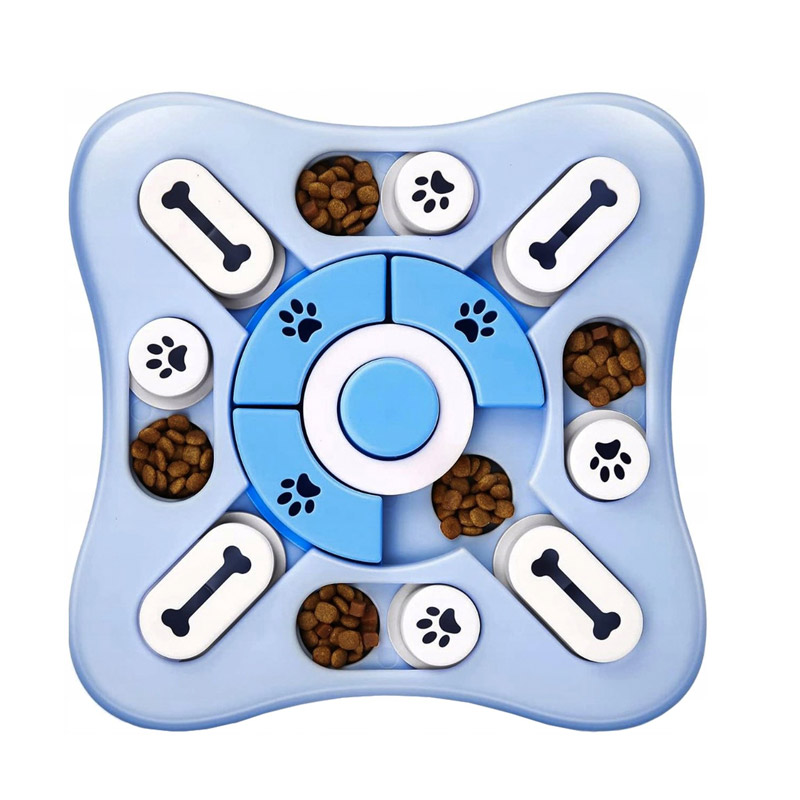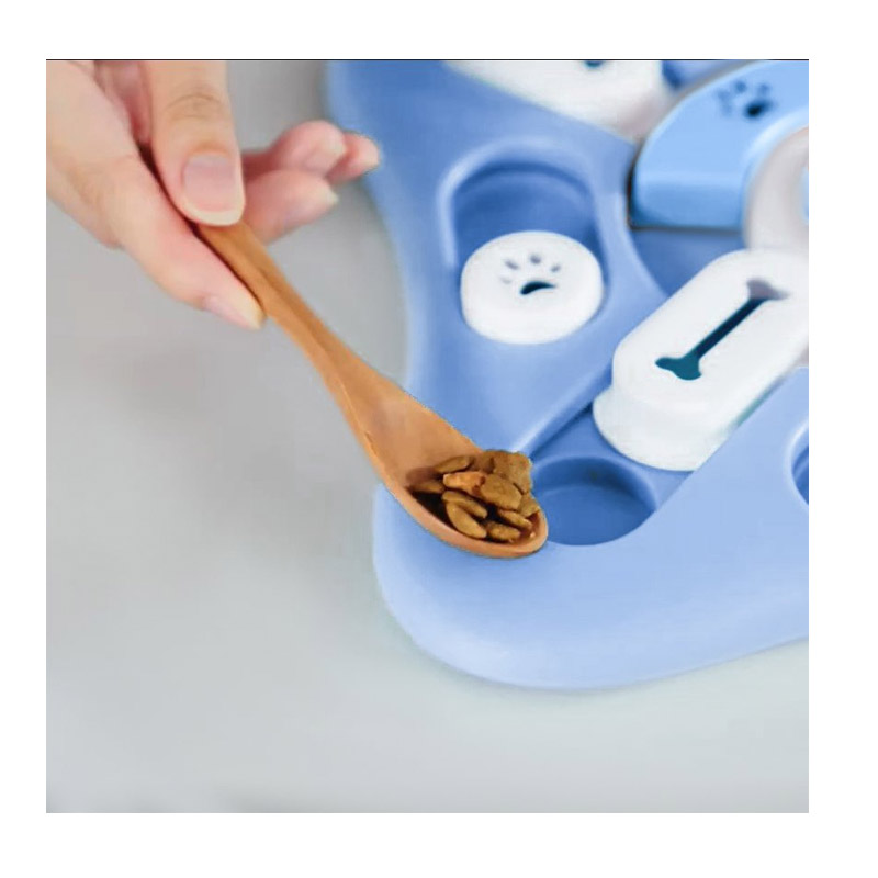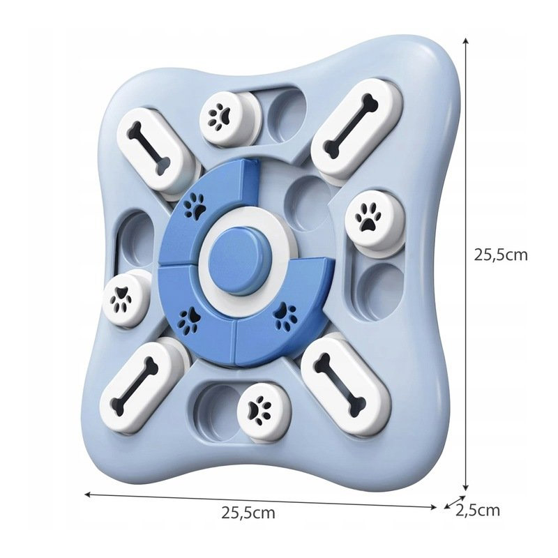 Το μπολ, προωθεί την αργή πέψη, αποτρέπει την παχυσαρκία και την υπερκατανάλωση τροφής. Χάρη στις αυλακώσεις, το ζώο πρέπει να δουλέψει λίγο πριν βγάλει τις λιχουδιές. Αυτή η λύση ευνοεί την αργή κατανάλωση τροφής, και έτσι μπορεί να συμβάλει στη σωστή πέψη. Κατασκευασμένο από πλαστικό με πολλά διαμερίσματα, με το κεντρικό να περιστρέφεται κατά 360° και κουμπί με ήχο.