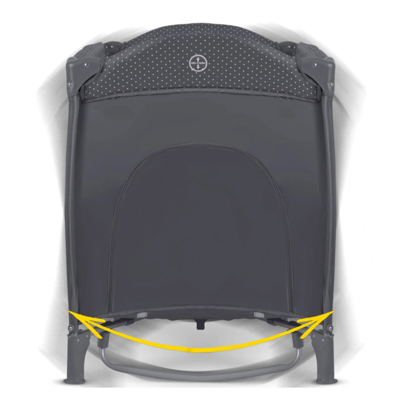 Το παρκοκρέβατο, είναι εξοπλισμένο με αποσπώμενη πλαϊνή είσοδο, η οποία είναι αδιαπέραστη από τα μικρά παιδιά χάρη στο φερμουάρ που είναι ραμμένο από έξω. Από την άλλη πλευρά, τα παιδιά μεγαλύτερης ηλικίας, πιο ευέλικτα, μπορούν να μπουν και να σηκωθούν από το κρεβάτι ανεξάρτητα, άνετα και με ασφάλεια – χάρη σε αυτό, δεν θα προσπαθήσουν να σκαρφαλώσουν στην επάνω άκρη.