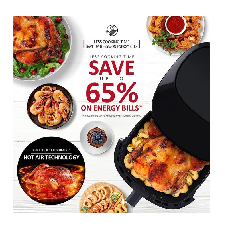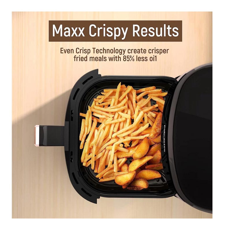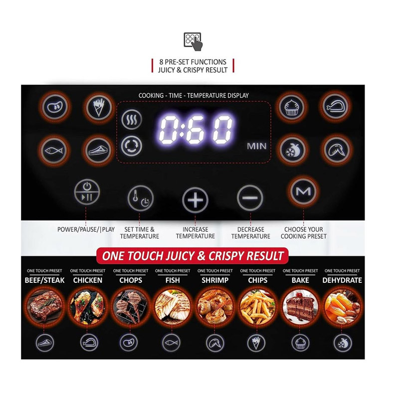 Η ψηφιακή φριτέζα, από την εταιρία Royalty Line, χρησιμοποιεί προηγμένη τεχνολογία ταχείας κυκλοφορίας αέρα 360° που κάνει τα τηγανητά τραγανά εξωτερικά και τρυφερά εσωτερικά με έως και 80% λιγότερα λιπαρά. Αυτή η τεχνολογία θερμότητας επιτρέπει γρήγορο και ομοιόμορφο μαγείρεμα. Με ισχύ 1200 W και αποσπώμενο κάδο 3.5 Lt, είναι μια ιδανική λύση για να μαγειρεύετε πιο υγιεινά και οικονομικά σε σχέση με τις κλασικές φριτέζες, καθώς χρειάζεται ελάχιστο λάδι (1-2 κουταλιές). Εκτός από πατάτες μπορείτε να μαγειρέψετε διάφορα φαγητά όπως κοτόπουλο ή λαχανικά.