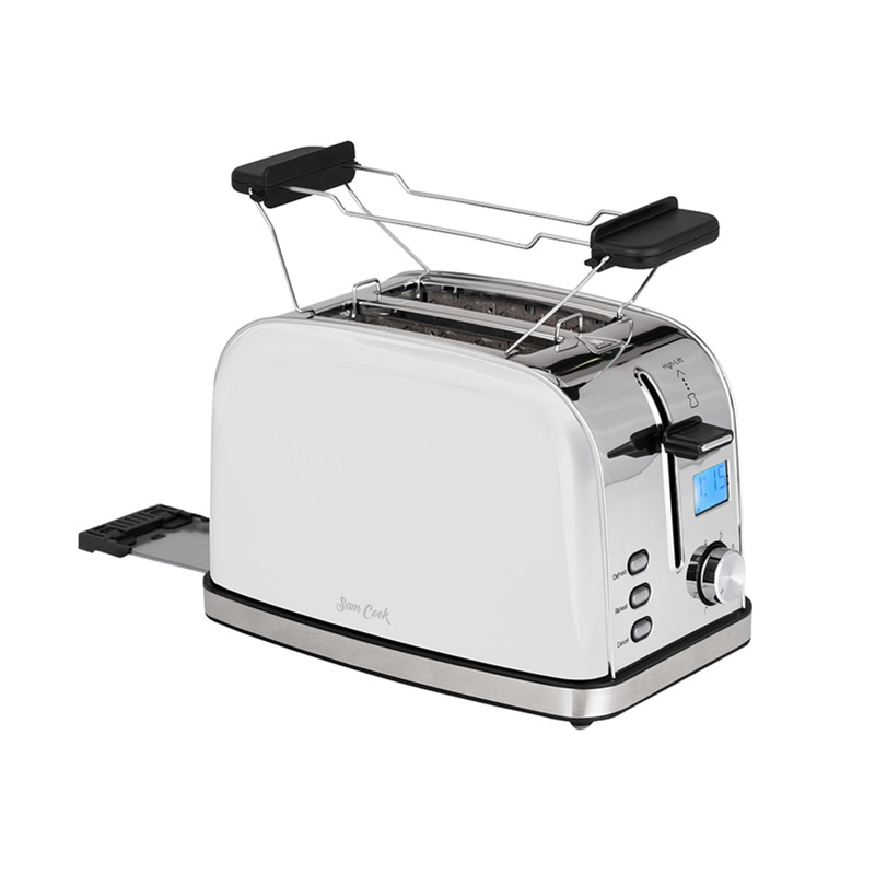 Η φρυγανιέρα, από την εταιρία SAM CCOK, διαθέτει ισχύ 950 W και 2 θέσεις φρυγανίσματος. Έχει 8 επίπεδα φρυγανίσματος, για να προσαρμόσετε το ψήσιμο του ψωμιού ανάλογα με τις προτιμήσεις σας ενώ μπορείτε επίσης να ζεστάνετε ή να ξεπαγώσετε φέτες ψωμί, αν χρειαστεί. Με LCD οθόνη για να ελέγχετε τον βαθμό ψησίματος και τον χρόνο προετοιμασίας του ψωμιού σε συνεχή βάση και πρόσθετη σχάρα για να ζεσταίνετε κρουασάν και ψωμάκια.