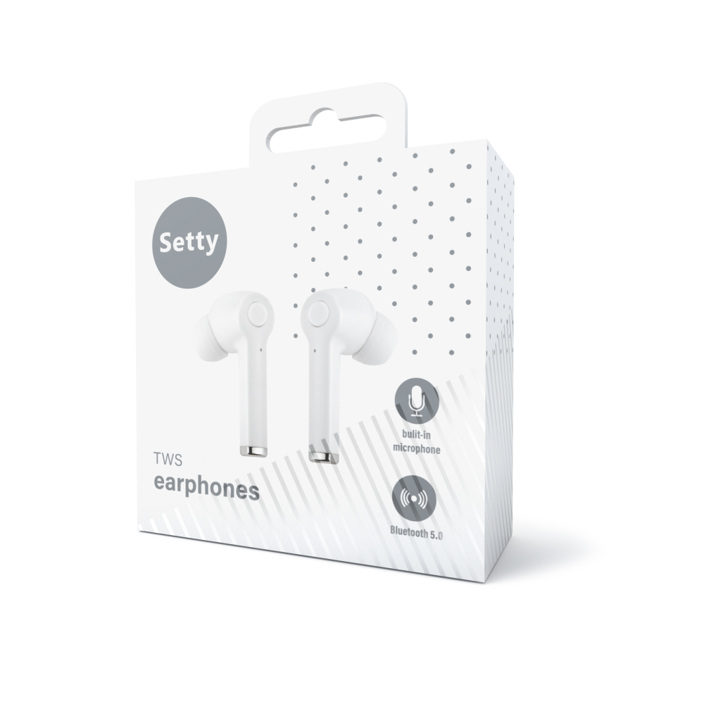 Setty TWS Bluetooth In‑Ear Ακουστικά με Θήκη Φόρτισης – Λευκό