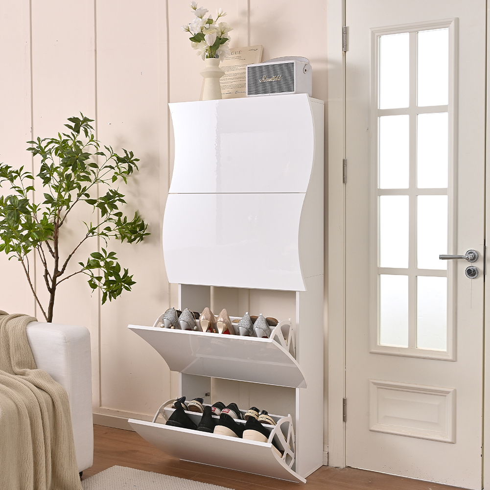Shally Dogan Παπουτσοθήκη Εισόδου σε Γυαλιστερό Ξύλο ONDE 4 Πόρτες Λευκό Εξοικονόμησης Χώρου 71×26.5x161cm 02841542