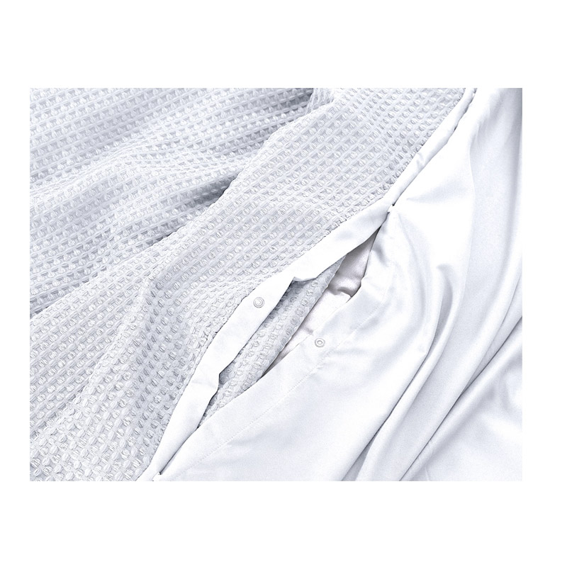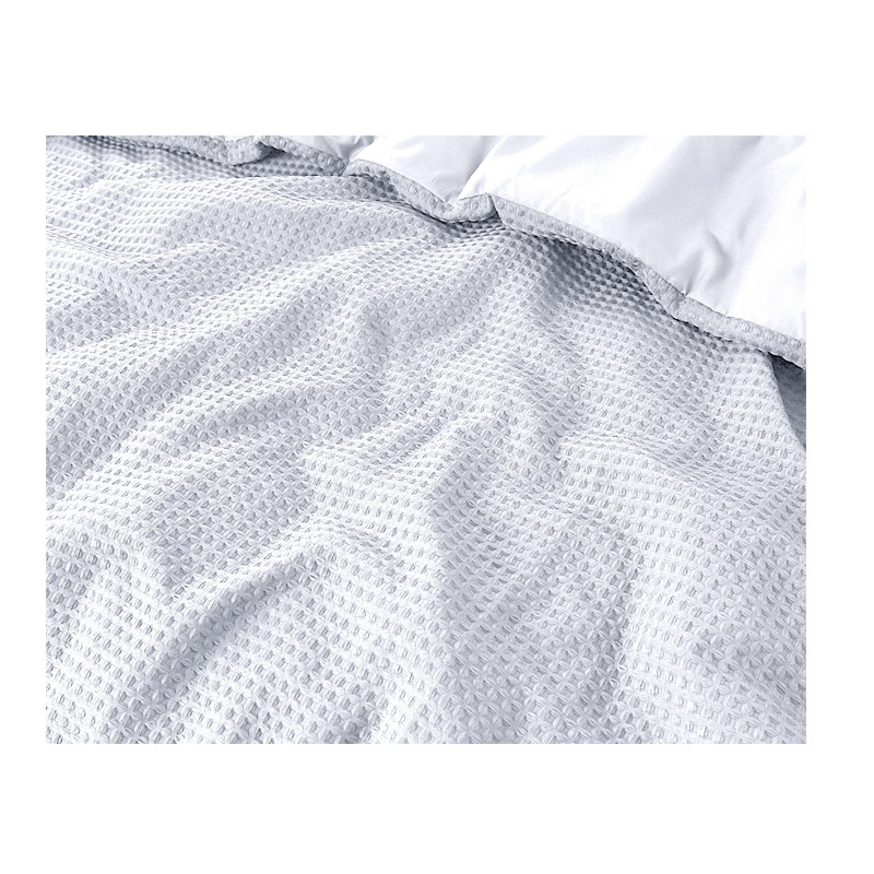 Το σετ, από την εταιρία Sleeptime, αποτελείται από μία υπέρδιπλη παπλωματοθήκη και δύο μαξιλαροθήκες, με σύνθεση από μικροΐνες πολυεστέρα, με ωραία και απαλή αίσθηση. Το σχέδιο βάφλας σε συνδυασμό με το ουδέτερο χρώμα δημιουργεί ένα διακριτικό αποτέλεσμα και δίνει στο υπνοδωμάτιό σας μια πολυτελή εμφάνιση. Η άλλη πλευρά της παπλωματοθήκης είναι σε λευκό ουδέτερο χρώμα.