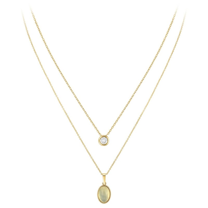So Charm Σετ 2 Κολιέ διακοσμημένο με Κρύσταλλα Swarovski και μεΛευκό Όνυχα, Χρυσό B2458W+BS3086D