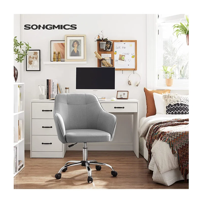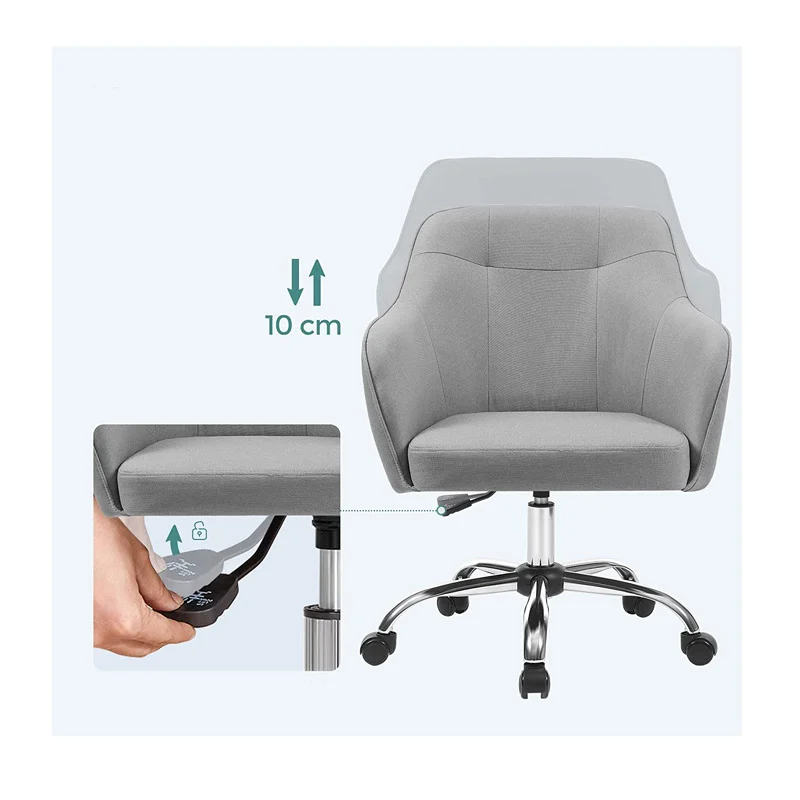Η καρέκλα γραφείου, από την εταιρεία Songmics, παρέχει τη μέγιστη άνεση σε όσους περνάνε πολλές ώρες στο γραφείο. Διαθέτει επιφάνεια από λινό ύφασμα και επένδυση από αφρό, που αυξάνει σημαντικά την άνεση της χρήσης. Ο εργονομικός σχεδιασμός της και η ψηλή της πλάτη εγγυώνται τη λειτουργικότητα της και την σωστή υποστήριξη του σώματος. Τα υποβραχιόνια είναι επενδεδυμένα και έχουν σωστό σχήμα, γεγονός που μειώνει τον πόνο των αγκώνων καθώς και το φορτίο στη σπονδυλική στήλη. Έχει ρυθμιζόμενο ύψος καθίσματος και δυνατότητα περιστροφής 360°.