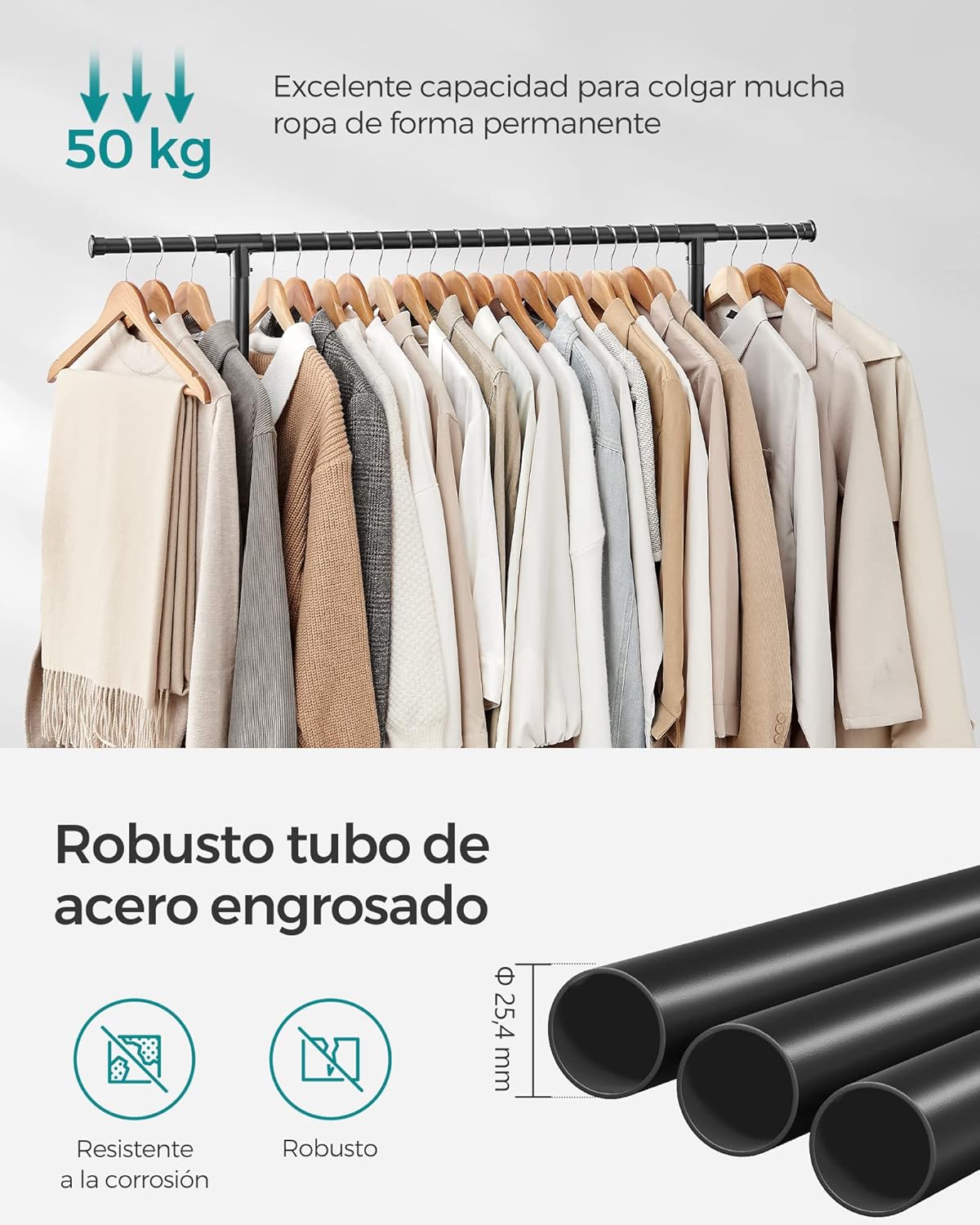 • Ρυθμιζόμενο ύψος: Προσαρμογή 113-180 cm για μακριά παλτό ή φορέματα.