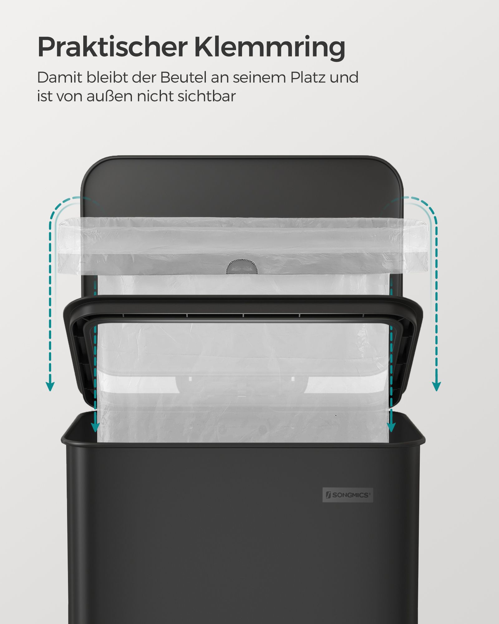 SONGMICS Ατσάλινος Κάδος Απορριμμάτων 40 Λίτρα με Καπάκι και 15 Σακούλες, Μαύρος LTB540B4002