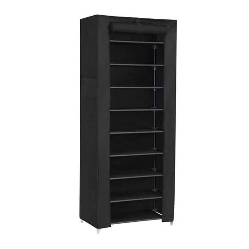 Το stand, από την εταιρία Songmics, είναι στιβαρό και πρακτικό και μπορείτε να αποθηκεύσετε έως και 27 ζευγάρια παπούτσια. Έχει 10 επίπεδα από ατσάλινους σωλήνες, με εύκολη συναρμολόγηση και μοντέρνο σχεδιασμό. Διαθέτει κάλυμμα από μη υφασμένο ύφασμα που κλείνει με φερμουάρ για να προστατεύει τα παπούτσια σας από τη σκόνη.