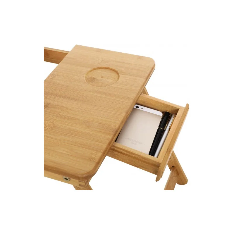 Η επιφάνεια του τραπεζιού μπορεί να ρυθμιστεί σε 5 διαφορετικά επίπεδα κλίσεων ενώ το διάτρητο σχέδιο της επιτρέπει το κατάλληλο αερισμό και προστατεύει το φορητό υπολογιστή σας από υπερθέρμανση. Διαθέτει ένα συρτάρι για την αποθήκευση καλωδίων USB, στυλό, κλπ. και μία cut-out βάση για ποτήρι.