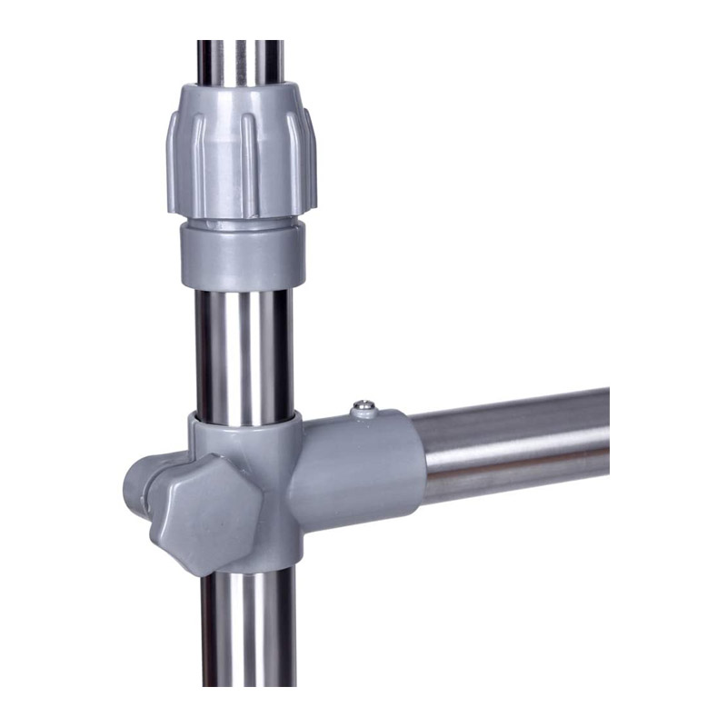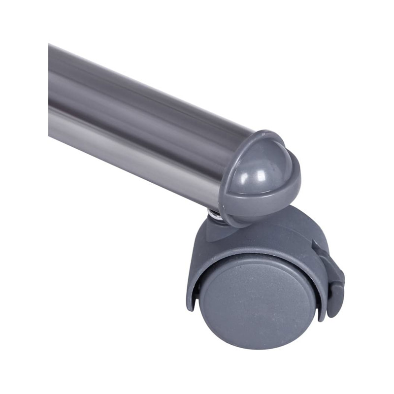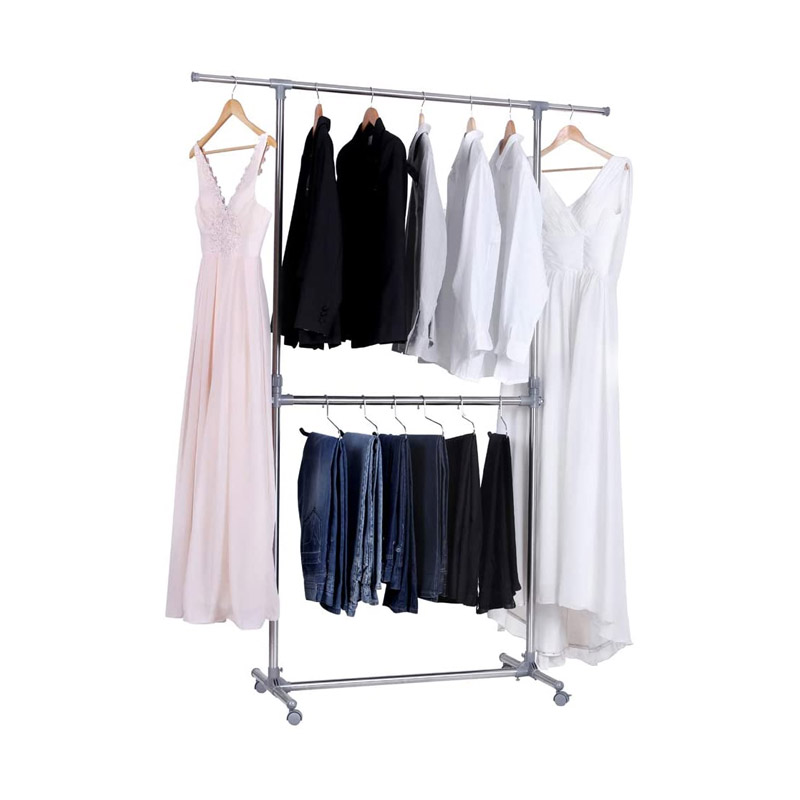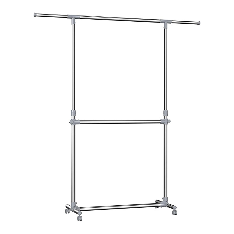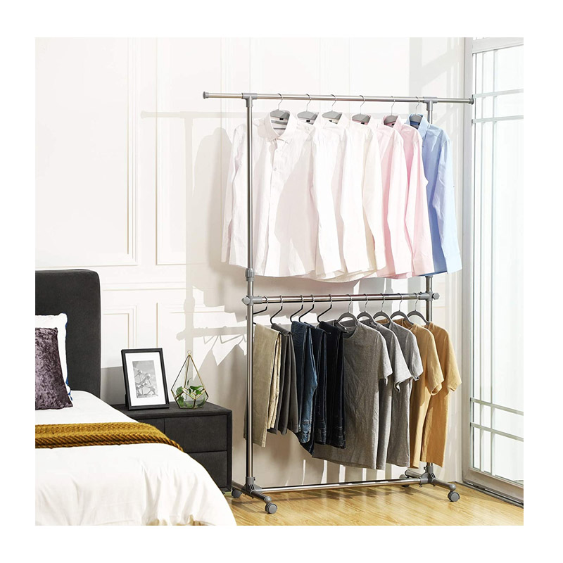 Η κρεμάστρα, διαθέτει ρυθμιζόμενο ύψος 113 – 198 cm και στο πάνω μέρος 2 επεκτάσιμα άκρα. Είναι εξοπλισμένη με 4 περιστρεφόμενες ρόδες, κατασκευασμένες από ποιοτικό υλικό, με φρένα ασφάλισης οι 2, για εύκολη μετακίνηση και με 1 επιπλέον ράγα για περισσότερο αποθηκευτικό χώρο.