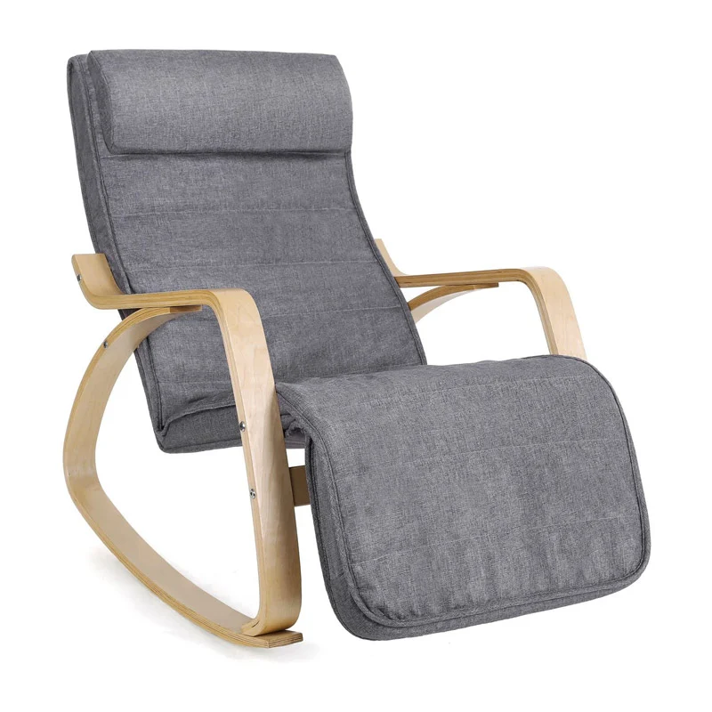 Η κουνιστή πολυθρόνα, από την εταιρία Songmics, είναι κατασκευασμένη από ξύλο σημύδας με επένδυση καθίσματος και πλάτη. Διαθέτει αφαιρούμενο μαξιλάρι με velcroρυθμιζόμενο υποπόδιο 5 επιπέδωνκάλυμμα που βγαίνει και πλένεται και αντιολισθητικά πέλματα για να κρατιέται σταθερή.