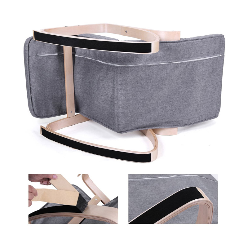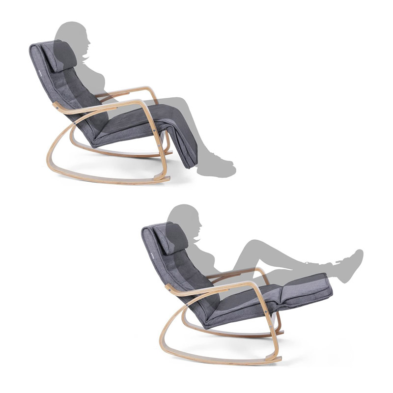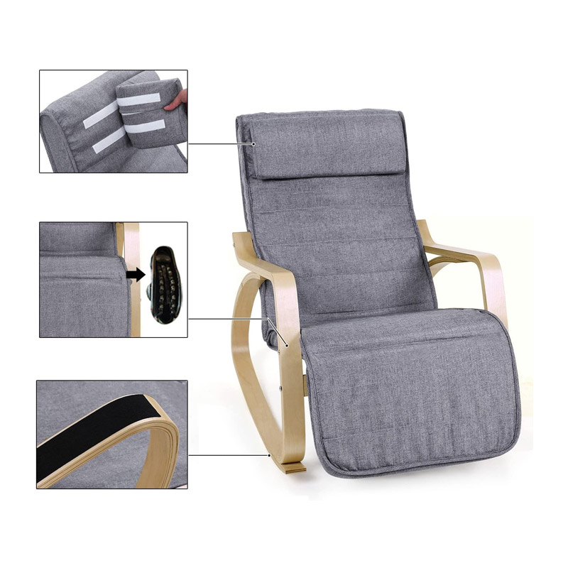 Η κουνιστή πολυθρόνα, από την εταιρία Songmics, είναι κατασκευασμένη από ξύλο σημύδας με επένδυση καθίσματος και πλάτη. Διαθέτει αφαιρούμενο μαξιλάρι με velcro, ρυθμιζόμενο υποπόδιο 5 επιπέδων, κάλυμμα που βγαίνει και πλένεται και αντιολισθητικά πέλματα για να κρατιέται σταθερή.