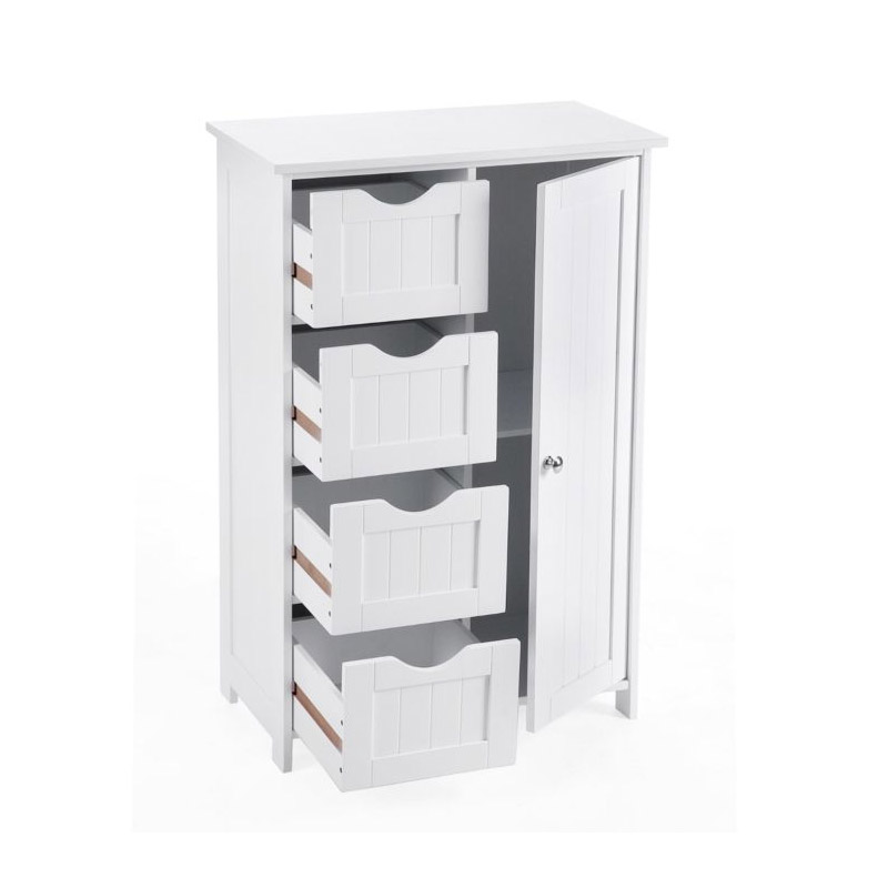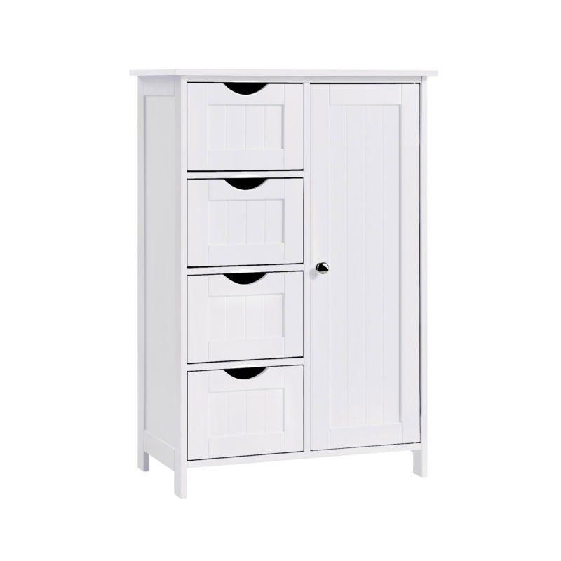 Το ντουλάπι από την εταιρεία Songmics είναι κατασκευασμένο από υψηλής ποιότητας MDF ξύλο καλυμμένο με βερνίκι, ανθεκτικό στην υγρασία και με εύκολο καθαρισμό. Διαθέτει 4 ευρύχωρα συρτάρια και ένα ντουλάπι με ρυθμιζόμενο ράφι, στα οποία μπορείτε να οργανώσετε και να αποθηκεύσετε διάφορα αντικείμενα.