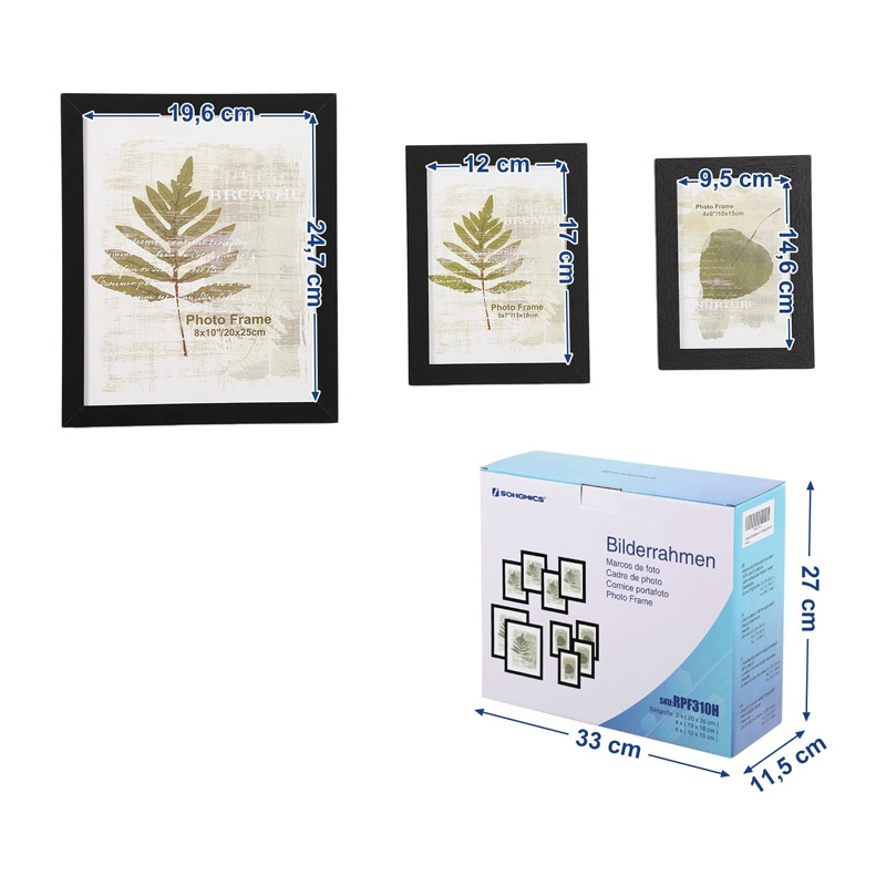 Σετ 10 Ξύλινες Κορνίζες σε Διαφορετικές Διαστάσεις Χρώματος Μαύρο Songmics RPF310H