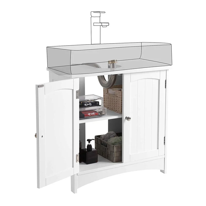 Το ντουλάπι είναι κατασκευασμένο από MDF ξύλο καλυμμένο με βερνίκι, ανθεκτικό στην υγρασία και με εύκολο καθαρισμό. Διαθέτει 2 πόρτες και χωρίζεται σε 2 διαμερίσματα με ρυθμιζόμενο ράφι 3 επιπέδων. Ιδανικό για την αποθήκευση πετσετών, προϊόντα καθαρισμού και διάφορα αξεσουάρ μπάνιου.