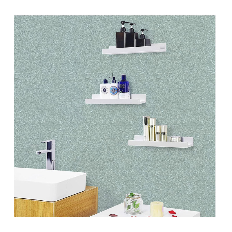 Τα επιτοίχια ράφια, από την εταιρία Songmics, διαθέτουν ανθεκτικό, αδιάβροχο σκελετό από MDF ξύλο και λευκή απόχρωση. Τα 3 ράφια έχουν προεξοχή ύψους 2 cm στο μπροστινό μέρος η οποίοα εξασφαλίζει ότι τα αντικείμενα που τοποθετείτε είναι σταθερά και κάθε ράφι μπορεί να φορτωθεί έως και 5 κιλά. Χάρη στον απλό σχεδιασμό τους ταιριάζουν σε κάθε δωμάτιο.