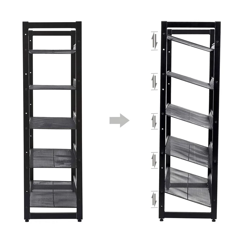 Το stand αποθήκευσης παπουτσιών, από την εταιρία Songmics, θα σας βοηθήσει να έχετε πάντα τακτοποιημένα και καθαρά τα παπούτσια σας. Διαθέτει 5 ράφια, υψηλής ποιότητας, με βάση σε μορφή μεταλλικού πλέγματος για τον επαρκή αερισμό των παπουτσιών σας. Τα ράφια είναι ρυθμιζόμενα και μπορούν να είναι σε κεκλιμένη ή επίπεδη μορφή, ανάλογα με το είδος των παπουτσιών που θέλετε να τοποθετήσετε. Οι σωλήνες έχουν λεία επιφάνεια και είναι ανθεκτικοί στη διάβρωση και στη φθορά. Εύκολο στη φροντίδα, απλά το καθαρίζετε με ένα υγρό πανί.