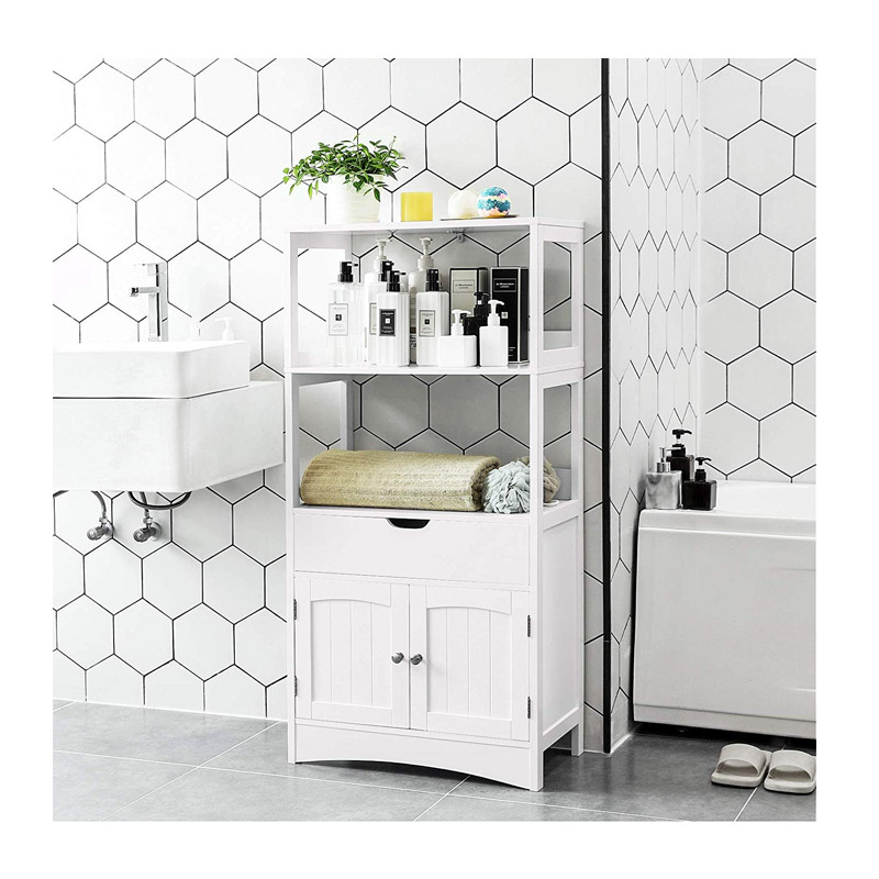 Ραφιέρα Μπάνιου με 2 Ράφια και 1 Ντουλάπι 60 x 122 x 32.5 cm Songmics BBC64WT
