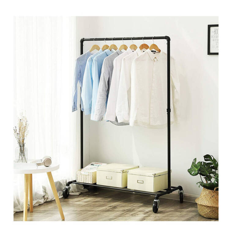 Η κρεμάστρα ρούχων, από την εταιρία Songmics, διαθέτει μεταλλικούς σωλήνες υψηλής ποιότητας, εξασφαλίζοντας ανώτερη αντοχή και σταθερότητα, με μέγιστο βάρος τα 90 Kg. Είναι ιδανική για παλτό, φορέματα, πουκάμισα και διάφορα ρούχα τα οποία θέλετε να έχετε πάντα τακτοποιημένα. Είναι εξοπλισμένη με επιπρόσθετο ράφι στο κάτω μέρος για παπούτσια και 4 πλαστικές και περιστρεφόμενες ρόδες 360° με φρένα ασφάλισης για εύκολη μετακίνηση.
