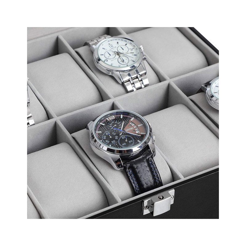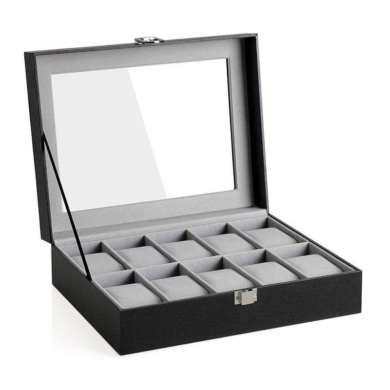 Η κοσμηματοθήκη – μπιζουτιέρα από την εταιρεία Songmics, διαθέτει 10 διαμερίσματα, με αφαιρούμενα ένθετα που μπορούν να τοποθετηθούν υπό γωνία ή να αφαιρεθούν εντελώς. Μπορείτε να αποθηκεύσετε έως 10 ρολόγια ή διάφορα άλλα κοσμήματα.