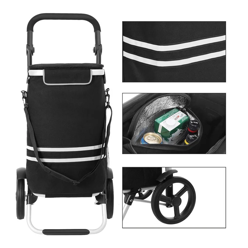 Το καρότσι, διαθέτει άφθονο αποθηκευτικό χώρο 35 Lt, διαμέρισμα ψύξης για να διατηρείτε καλά τα παγωμένα και κατεψυγμένα τρόφιμα μέχρι να φτάσετε στο σπίτι, ανακλαστήρες για μεγαλύτερη ασφάλεια και θήκη για ομπρέλα. Οι 2 τροχοί είναι από υλικό EVA και είναι ιδιαίτερα αθόρυβοι.
