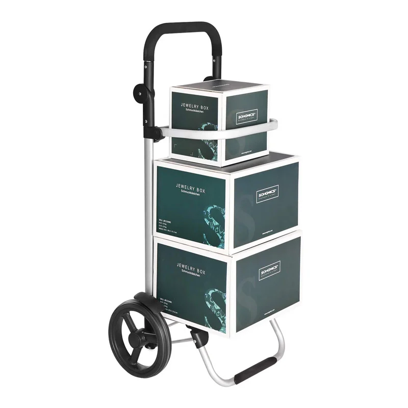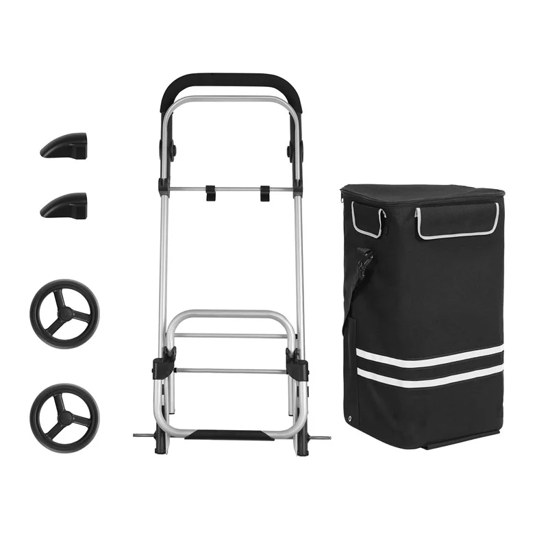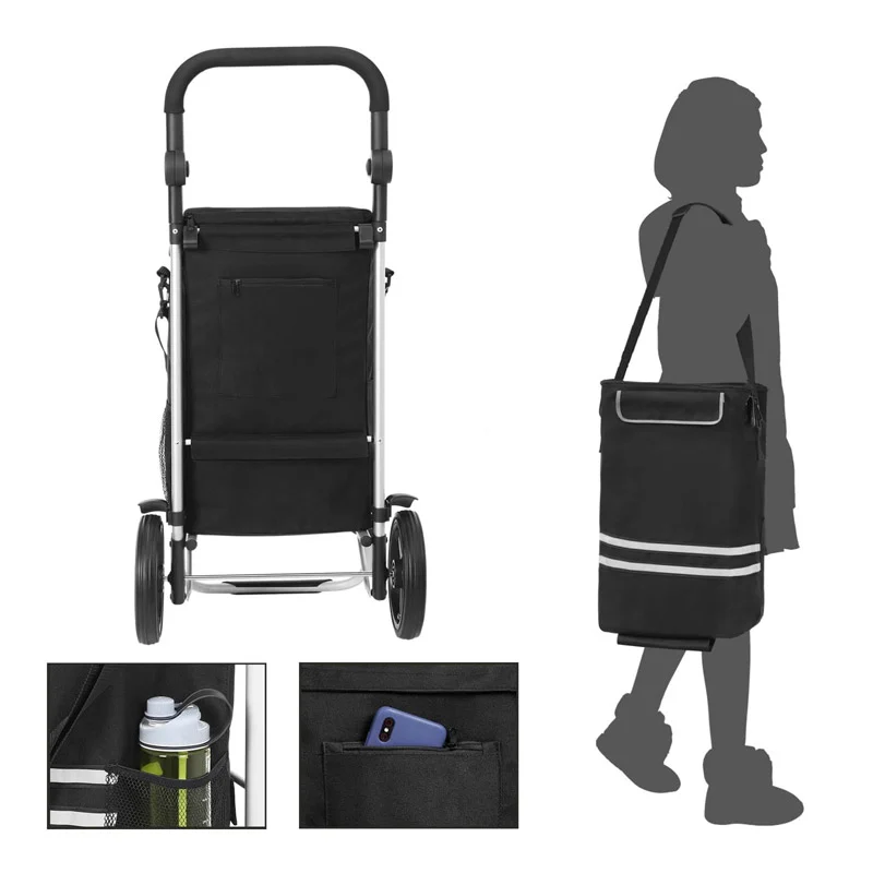 Το καρότσι λαϊκής, από την εταιρία Songmics, διαθέτει πλαίσιο αλουμινίου, είναι ελαφρύ και εύκολο να κυλήσει εμπρός και πίσω. Η ρυθμιζόμενη λαβή προσφέρει καλή στήριξη στον καρπό και διευκολύνει την κίνηση του καροτσιού. Η στιβαρή τσάντα από 600D πολυεστέρα μπορεί να στερεωθεί εύκολα χάρη στην τεχνολογία Velcro. Επιπλέον, η τσάντα αποσπάται εύκολα και μπορεί να χρησιμοποιηθεί ως τσάντα ώμου στην οποία μπορείτε να αποθηκεύσετε αντικείμενα έως και 10 Kg.