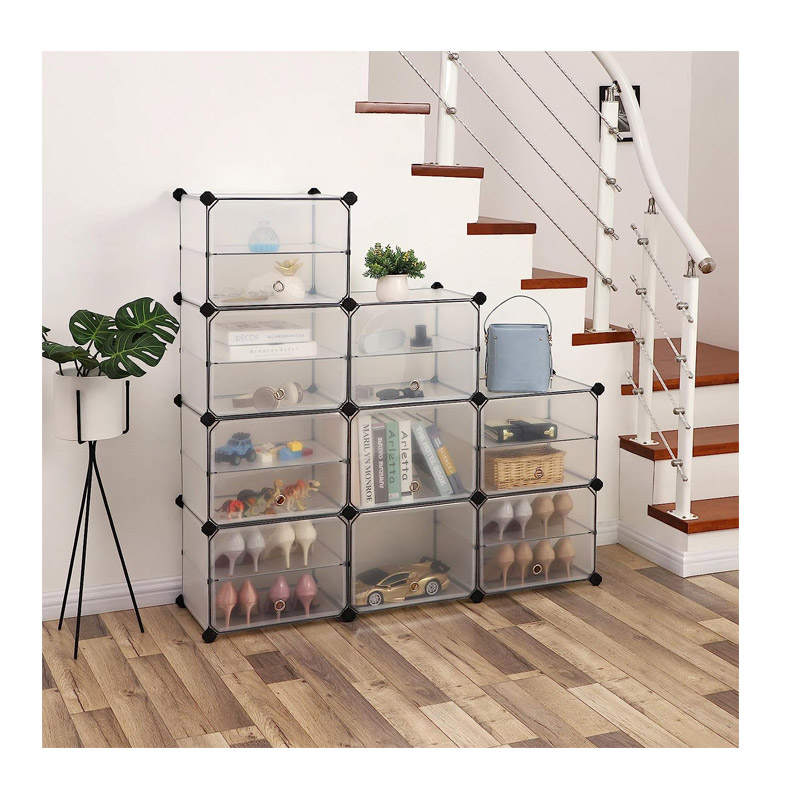 Η πολυμορφική παπουτσοθήκη, από την εταιρία Songmics, αποτελείται από 9 κύβους κατασκευασμένοι από πλαστικό PP. Τα πλαστικά φύλλα PP είναι σφιχτά κλειδωμένα στη θέση τους με ποιοτικούς συνδέσμους ABS για σταθερή στήριξη, επιτρέποντας σε κάθε κύβο να χωράει έως και 5 Kg.