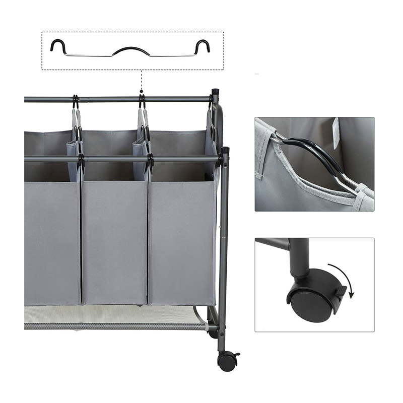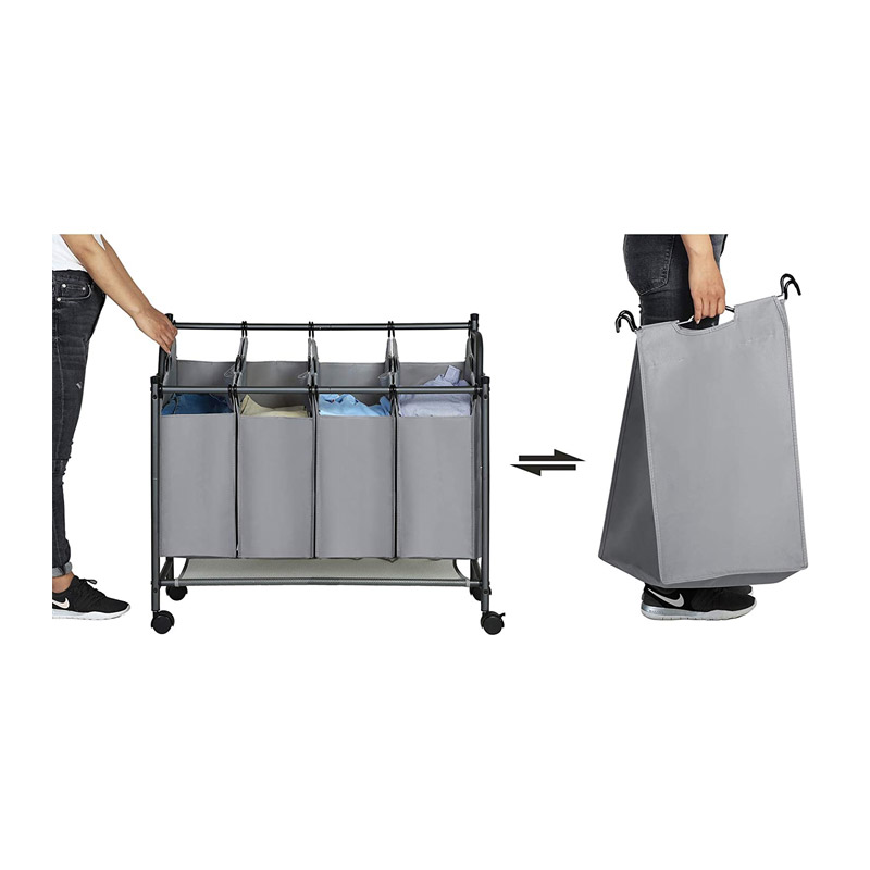 Το καλάθι απλύτων, από την εταιρία Songmics, διαθέτει εύκαμπτη, μεταλλική δομή, με μεγάλη σταθερότητα κάτω υψηλό φορτίο και υψηλή αντοχή στη σκουριά. Είναι κατάλληλο για την οργάνωση των άπλυτων ρούχων στο μπάνιο αλλά και για να αποθηκεύσετε παιχνίδια και περιοδικά. Έχει 4 σάκους διαλογής, που μπορούν εύκολα να αφαιρεθούν για να μεταφέρετε τα άπλυτα χρησιμοποιώντας τις λαβές. Το ύφασμα των σάκων είναι αναπνεύσιμο, ανθεκτικό στη φθορά και δεν είναι ευαίσθητο στη βρωμιά. Έχει εύκολη συναρμολόγηση χωρίς εργαλεία και 4 τροχούς με φρένο για εύκολη αλλά και ασφαλή μεταφορά.