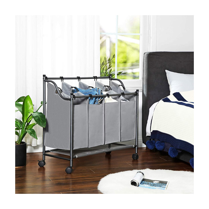 Τροχήλατο Καλάθι Απλύτων με 4 Χώρους Χρώματος Γκρι Songmics LSF005GS