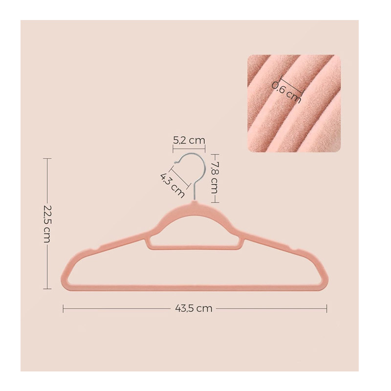 Σετ Βελούδινες Κρεμάστρες Ρούχων 50 τμχ Χρώματος Ροζ Songmics CRF50PK