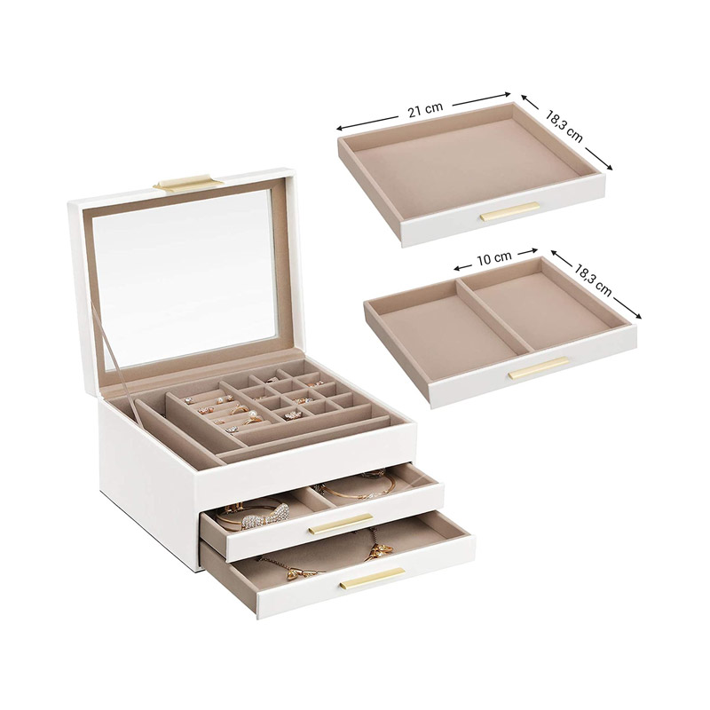 Κοσμηματοθήκη – Μπιζουτιέρα με 2 Συρτάρια 23.1 x 20.3 x 13.5 cm Χρώματος Λευκό Songmics JBC239WT