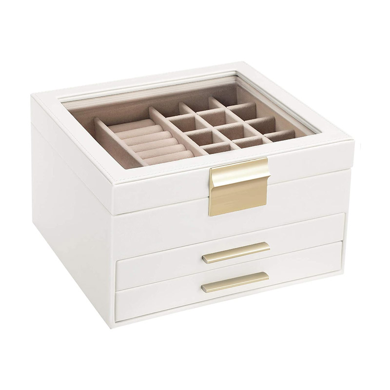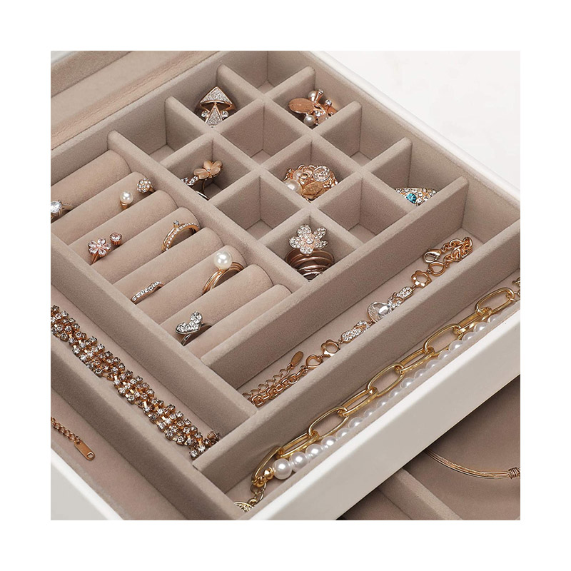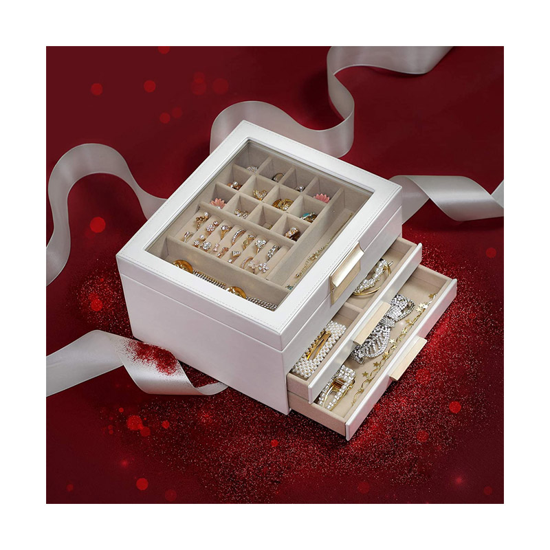 Η κοσμηματοθήκη – μπιζουτιέρα, διαθέτει πολλά διαφορετικά διαμερίσματα και ειδικές θήκες που θα σας επιτρέψουν να οργανώσετε τα κοσμήματά σας, γρήγορα και εύκολα. Περιλαμβάνει επίσης, 2 συρτάρια για ακόμη περισσότερο αποθηκευτικό χώρο. Τα διαμερίσματα έχουν διαφορετικά μεγέθη, για να αποθηκεύουν ρολόγια, βραχιόλια, περιδέραια, σκουλαρίκια κ.α.