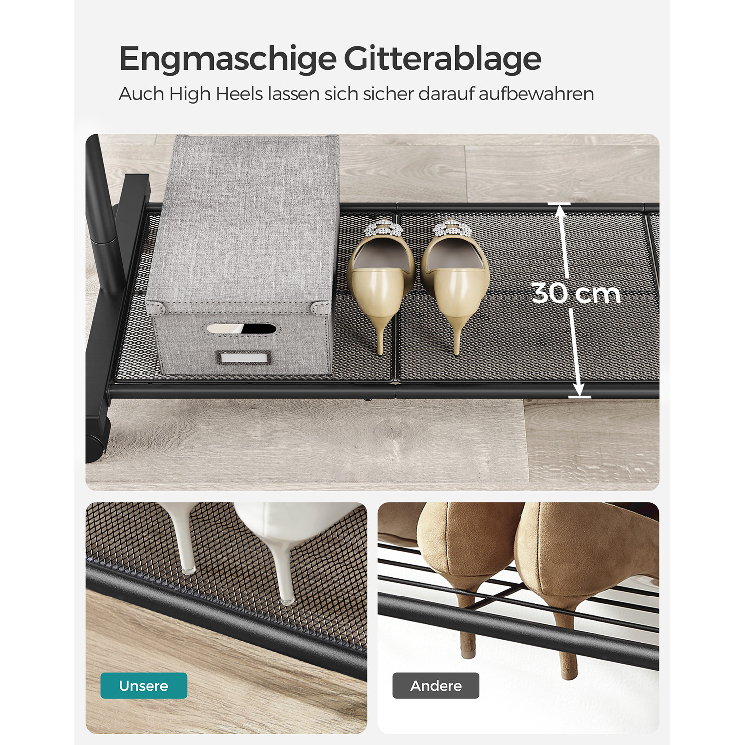 Με ένα κάτω ράφι από πλέγμα που αντέχει έως και 10 κιλά, γιατί να μην προετοιμάσετε τα παπούτσια που ταιριάζουν με τα σύνολα της επόμενης εβδομάδας; Το πυκνό πλέγμα επιτρέπει ακόμα και στα ψηλοτάκουνα να βρουν τη θέση τους.