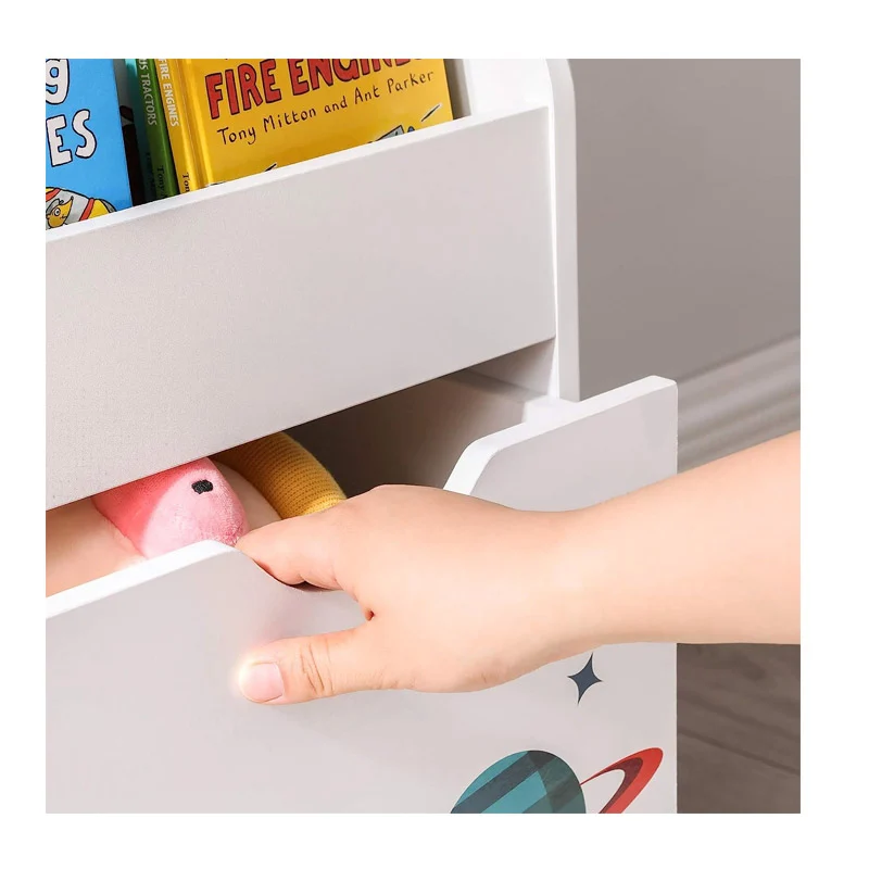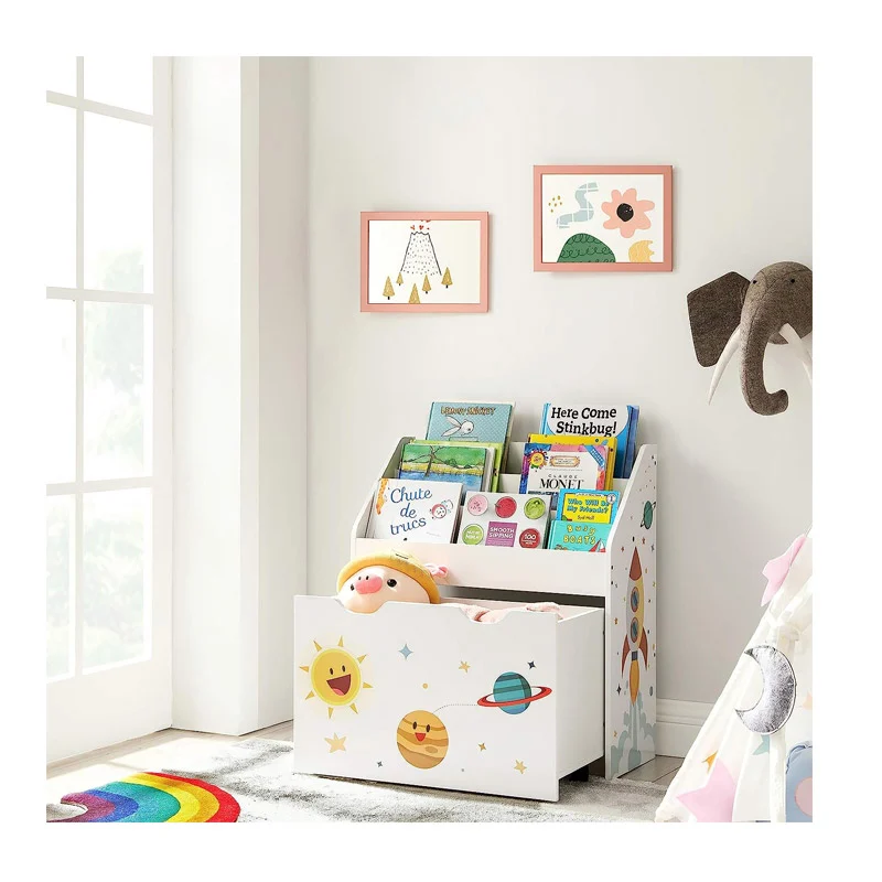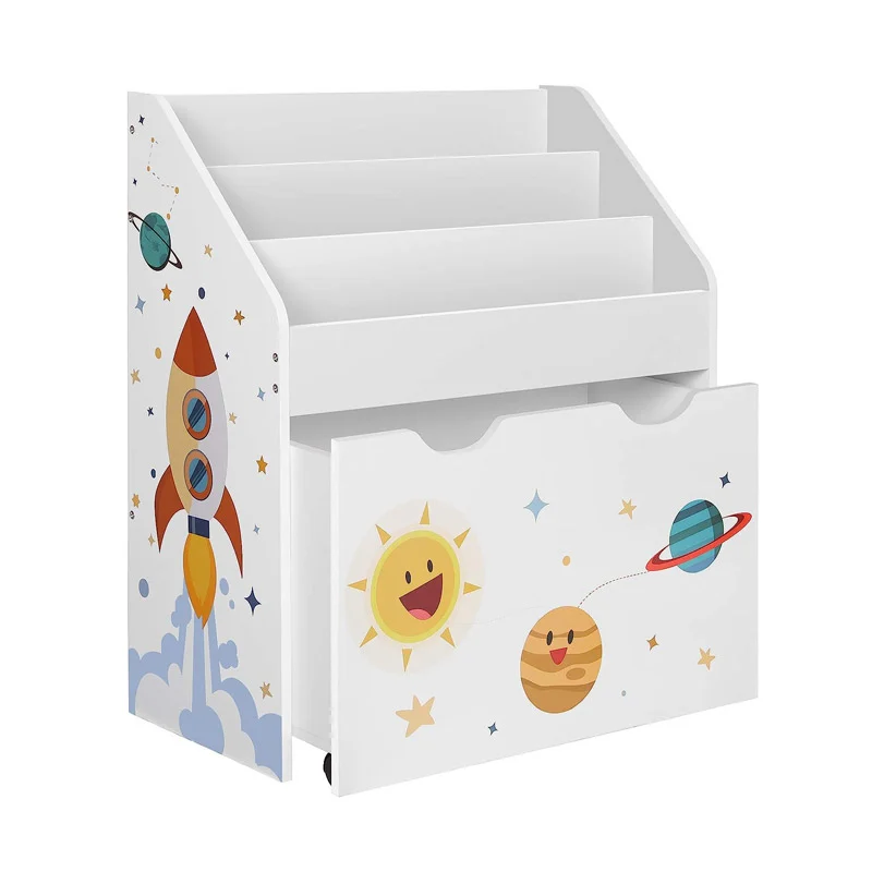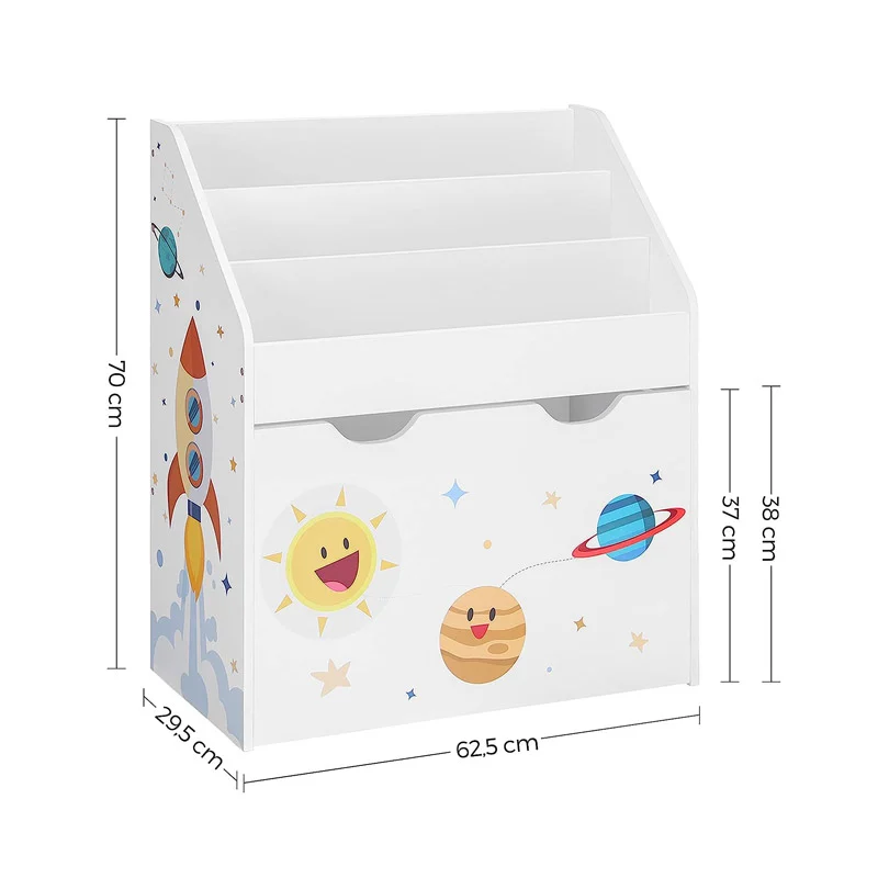 Η παιδική βιβλιοθήκη, από την εταιρία Songmics, είναι κατασκευασμένη υψηλής ποιότητας μοριοσανίδες. Σχεδιασμένη για μικρά παιδιά, έχει ιδανικό ύψος για να τα βοηθά να φέρουν αντικείμενα εύκολα. Οι σκαλιστές λαβές επιτρέπουν το εύκολο τράβηγμα. Οι στρογγυλεμένες γωνίες και το κιτ προστασίας από την ανατροπή προσθέτουν ασφάλεια. Τα 3 ανοιχτά ράφια στο επάνω μέρος, θα βοηθήσουν παιδί να τοποθετήσει τα βιβλία του και το τροχήλατο συρτάρι στο κάτω μέρος να τοποθετήσει τα παιχνίδια του.