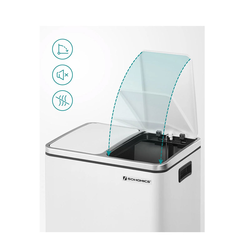 Μεταλλικός Διπλός Κάδος Απορριμμάτων από Ατσάλι με 2 Πεντάλ και Σύστημα Soft-Close 30 Lt Χρώματος Λευκό Songmics LTB30WT