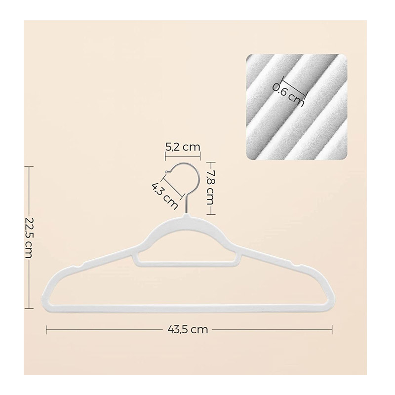 Σετ Βελούδινες Κρεμάστρες Ρούχων 20 τμχ Χρώματος Λευκό Songmics CRF020W01