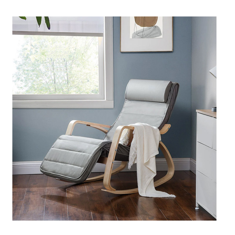 Η κουνιστή πολυθρόνα, από την εταιρία Songmics, είναι κατασκευασμένη από ξύλο σημύδας με επένδυση καθίσματος και πλάτη. Διαθέτει αφαιρούμενο μαξιλάρι με velcro, ρυθμιζόμενο υποπόδιο 5 επιπέδων, κάλυμμα που βγαίνει και πλένεται και αντιολισθητικά πέλματα για να κρατιέται σταθερή.