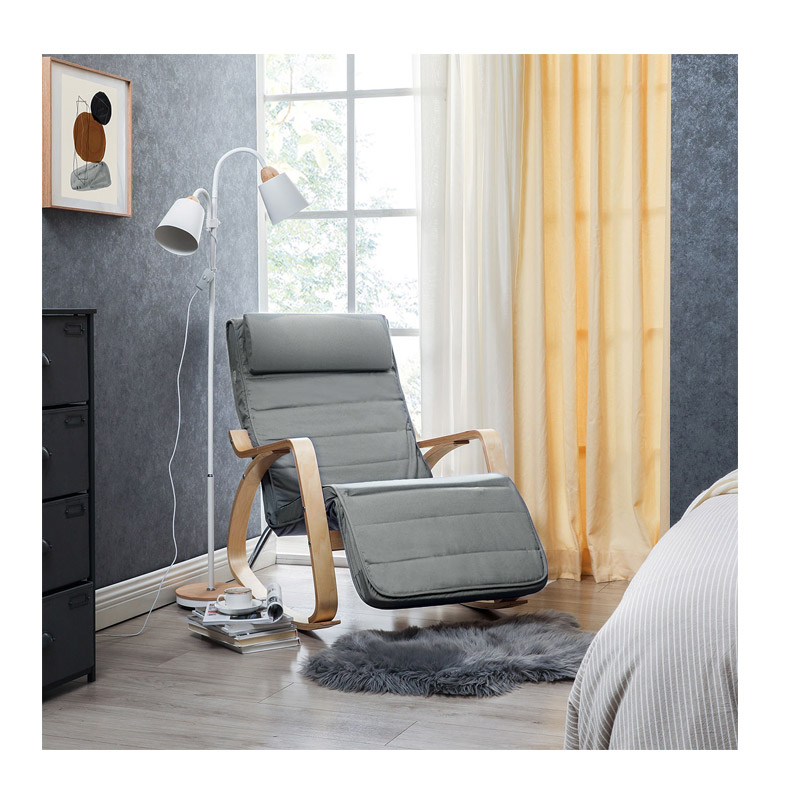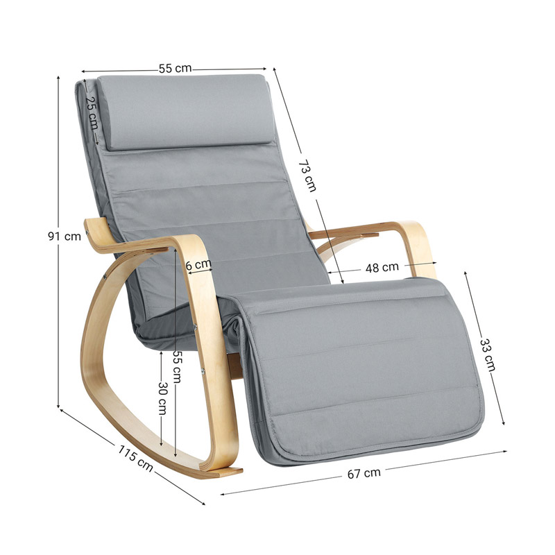 Ξύλινη Κουνιστή Πολυθρόνα με Ρυθμιζόμενο Υποπόδιο 67 x 91 x 115 cm Χρώματος Γκρι Songmics LYY010G01