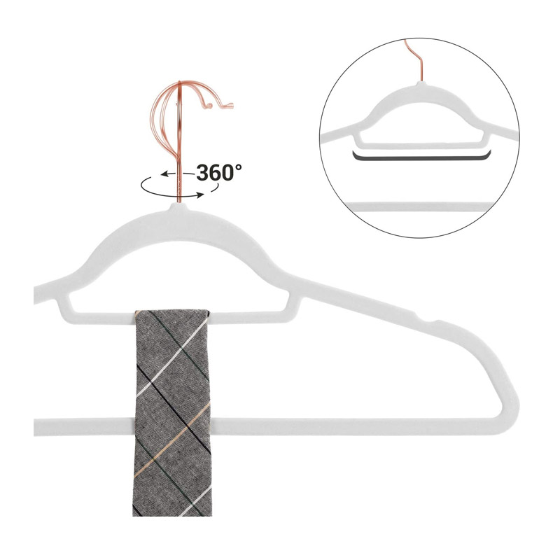 Το σετ, από την εταιρία Songmics, αποτελείται από 50 βελούδινες κρεμάστρες, ώστε να αποφεύγεται η ολίσθηση των ρούχων. Διαθέτουν μεταλλικά άγκιστρα, ανθεκτικά στη σκουριά και στη διάβρωση, τα οποία περιστρέφονται κατά 360°, για μεγαλύτερη ευκολία.