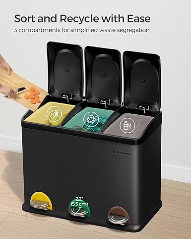 Αυτός ο τριπλός κάδος διαθέτει τρία διαμερίσματα των 15 λίτρων, καθιστώντας εύκολο τον διαχωρισμό διαφορετικών τύπων απορριμμάτων και απλοποιώντας τη ρουτίνα διαχείρισης απορριμμάτων του σπιτιού σας.