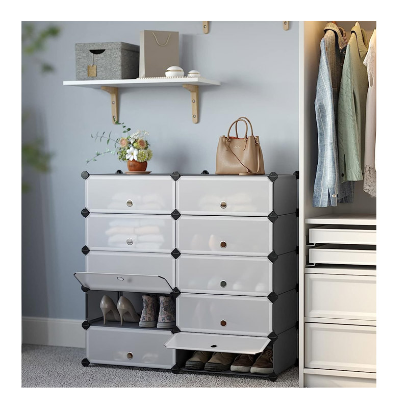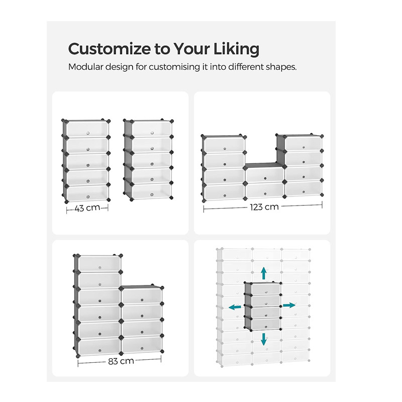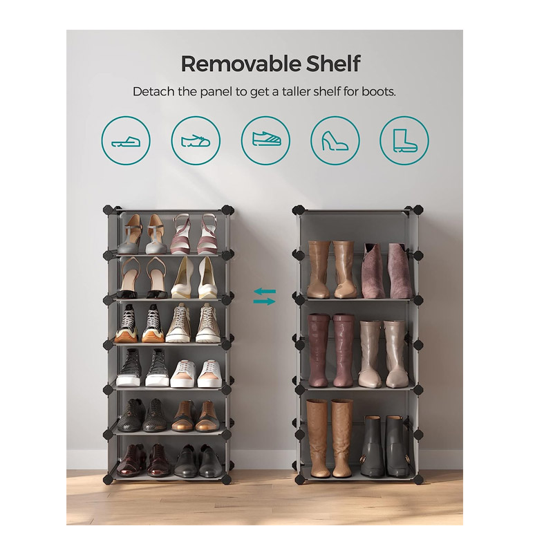 Η παπουτσοθήκη, από την εταιρία Songmics, διαθέτει 10 θήκες και μπορεί να χωρέσει 20-30 ζευγάρια παπούτσια (ψηλοτάκουνα, αθλητικά παπούτσια και παιδικά). Με ποιοτικούς συνδέσμους ABS, στιβαρό μεταλλικό σκελετό και αδιάβροχα πλαστικά φύλλα PP που καθαρίζονται εύκολα. Το σχήμα της μπορεί να προσαρμοστεί για να καλύψει κάθε ανάγκη σας.