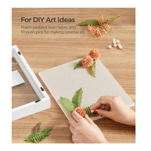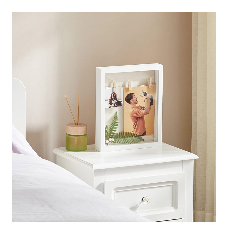 Η κορνίζα, από την εταιρία Songmics, διαθέτει ξύλινο πλαίσιο και καλύπτεται με διάφανη γυάλινη πρόσοψη με λειασμένες άκρες για ασφαλή αντικατάσταση εικόνων. Με επένδυση από λινό ύφασμα, σπάγκο κάνναβης, 3 μίνι μανταλάκια και 10 καρφίτσες, είναι ιδανική για καρτ-ποστάλ και φωτογραφίες.