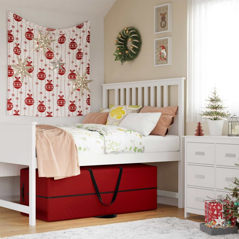 Μια μεγάλη τσάντα αποθήκευσης με λαβές και φερμουάρ. Με κόκκινο χρώμα, αυτή η χριστουγεννιάτικη τσάντα αποθήκευσης είναι έτοιμη να κρατήσει το χριστουγεννιάτικο δέντρο σας και άλλες διακοσμήσεις.