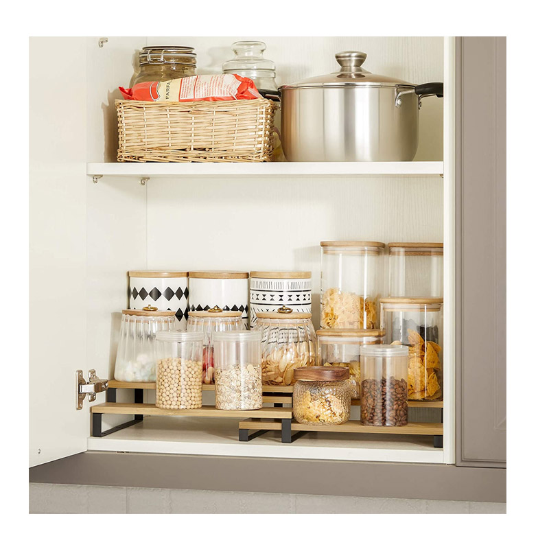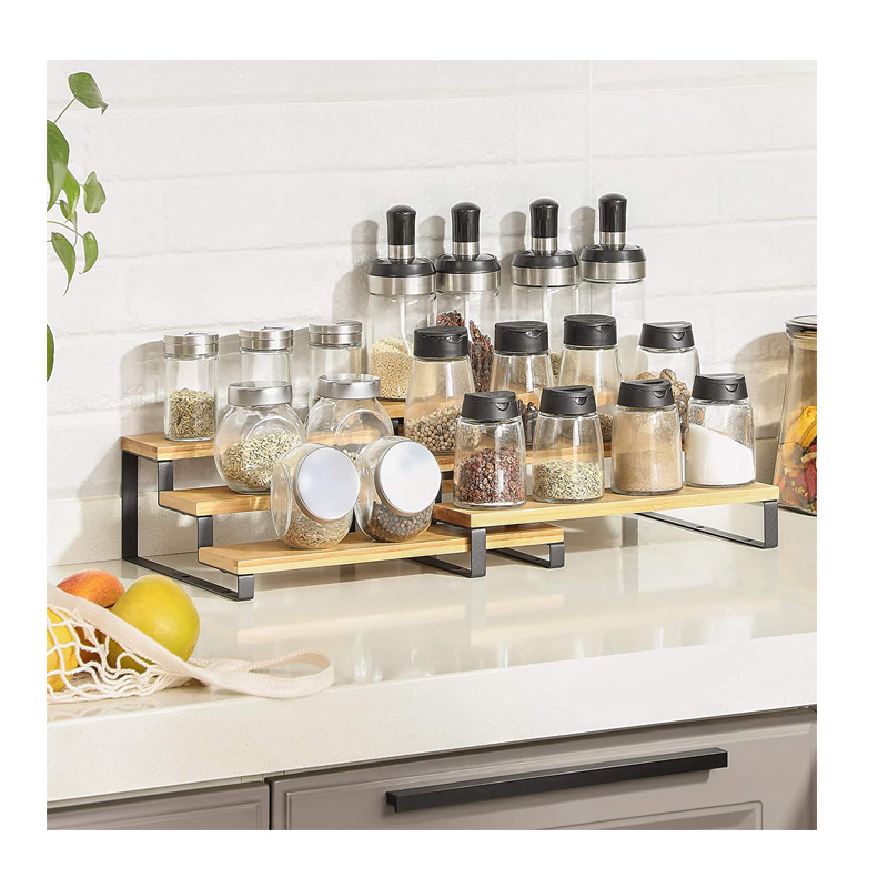 Το σετ, από την εταιρία Songmics, αποτελείται από 2 ξεχωριστές βάσεις για την οργάνωση των μπαχαρικών σας. Μπορείτε να προσαρμόσετε τη βάση στο επιθυμητό μέγεθος για το ντουλάπι και τα μπαχαρικά σας καθώς είναι επεκτεινόμενη. Μπορείτε επίσης να τη χωρίσετε σε 2 ξεχωριστές βάσεις και να τις χρησιμοποιήσετε σε διαφορετικά σημεία. Κάθε βάση έχει 3 ράφια από ξύλο μπαμπού και μεταλλικό στήριγμα από ατσάλι.