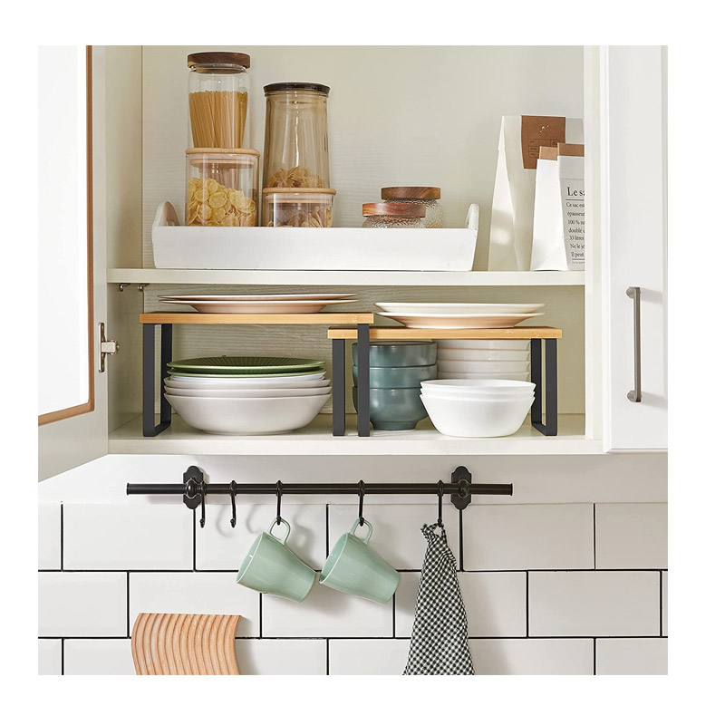 Το σετ, από την εταιρία Songmics, αποτελείται από δύο βάσεις με ατσάλινο σκελετό και επιφάνειες από φυσικό μπαμπού. Οι βάσεις είναι ιδανικές για την οργάνωση των μπαχαρικών στην κουζίνα σας και διάφορων άλλων αντικειμένων ή σκευών.