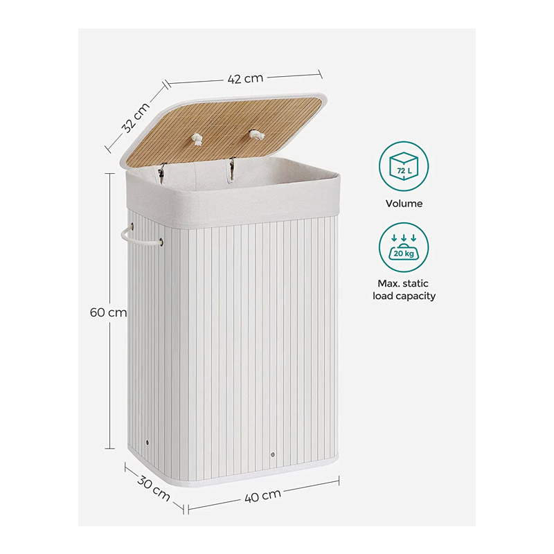 Πτυσσόμενο Καλάθι Απλύτων από Μπαμπού XL 72 Lt Χρώματος Λευκό Songmics LCB010W01