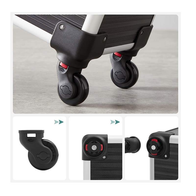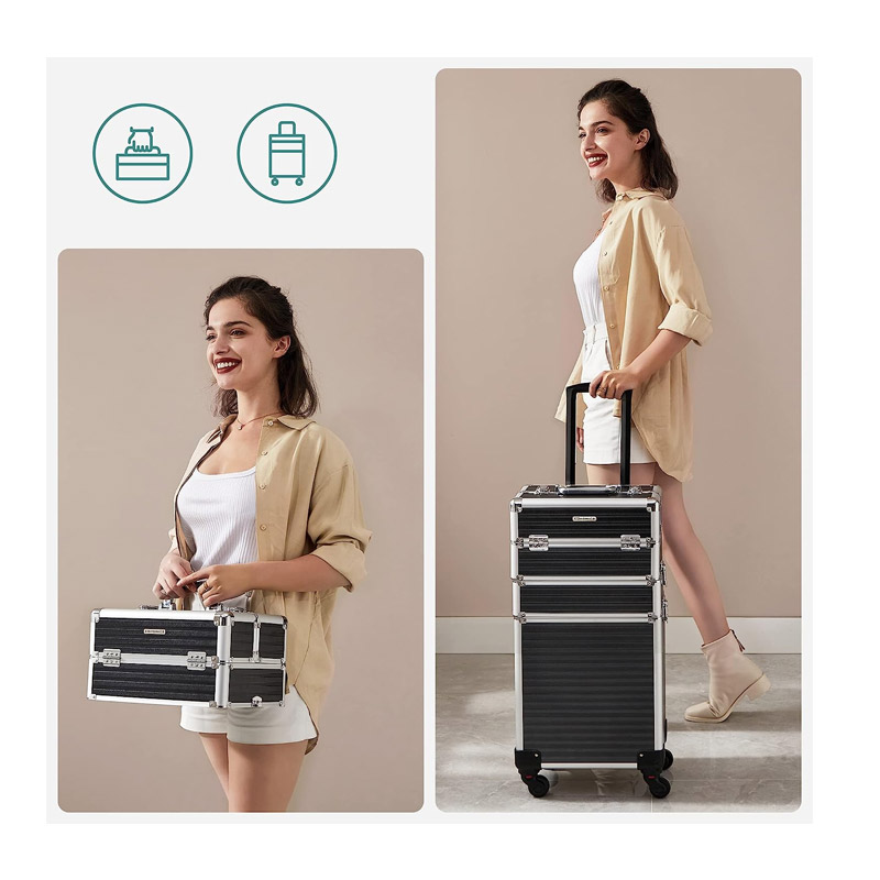 Η βαλίτσα μακιγιάζ, από την εταιρία Songmics, έχει σχεδιαστεί ειδικά για τους κομμωτές και τους αισθητικούς. Μπορείτε να αποθηκεύσετε όλα είδη για το μακιγιάζ, την περιποίηση μαλλιών και νυχιών, χωρίς να χρειάζεται να τα μεταφέρετε σε ξεχωριστές τσάντες.