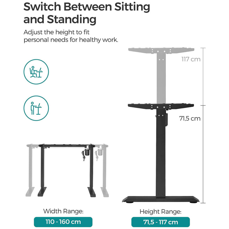 SONGMICS Ηλεκτρικό Πλαίσιο Γραφείου Ρυθμιζόμενο σε Ύψος με Λειτουργία Μνήμης, Κατασκευή από Ατσάλι, Μαύρο, 70-120 εκ., LPC51B