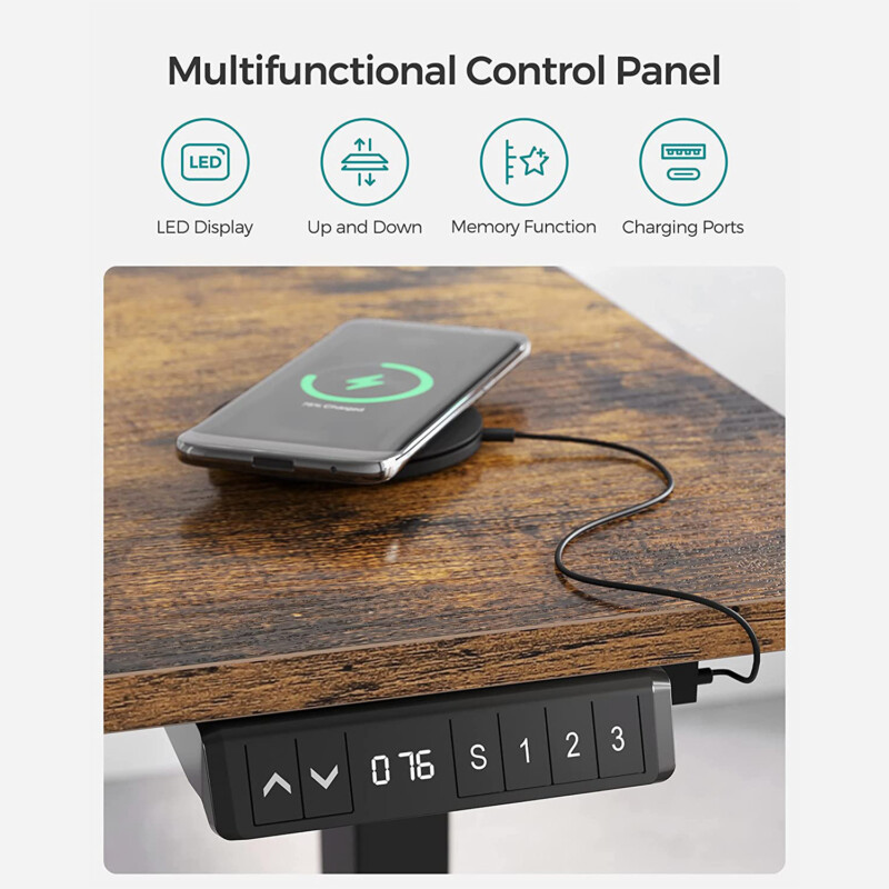 Πρακτικός σχεδιασμός: Με τα κουμπιά μπορείτε να αποθηκεύσετε 3 ύψη. Με θύρες USB και TYPE-C, μπορείτε να φορτίσετε τις συσκευές σας. Για λόγους ασφαλείας, η ρύθμιση ύψους σταματά και επαναφέρει το τραπέζι ελαφρώς όταν χτυπήσει σε εμπόδιο κατά την κίνηση.