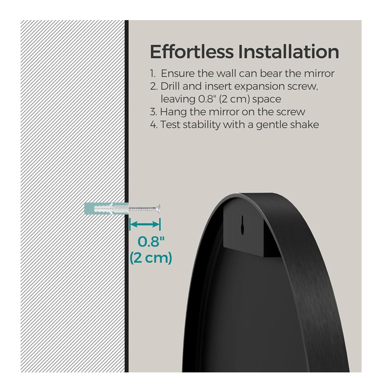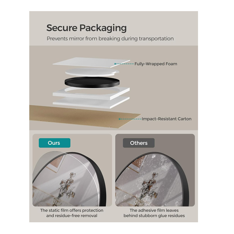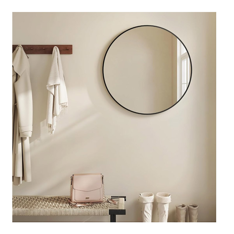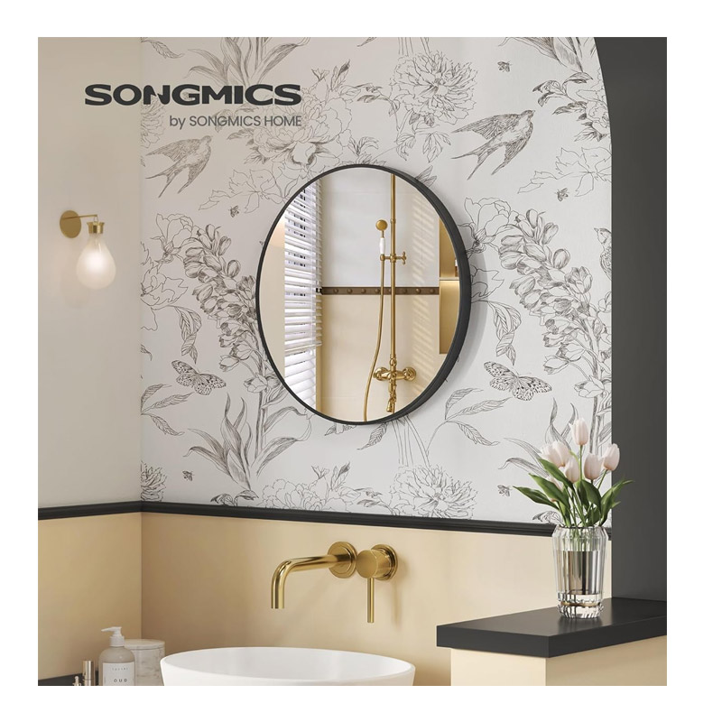 Ο καθρέπτης τοίχου, από την εταιρία Songmics, διαθέτει στρογγυλό σχεδιασμό με πλαίσιο από κράμα αλουμινίου με βουρτσισμένο φινίρισμα, που συνδυάζεται άψογα με το γυαλί πάχους 5 mm, καθιστώντας τον στιβαρό και ανθεκτικό. Με τον κλασικό στρογγυλό σχεδιασμό και τον κομψό μαύρο σκελετό, προσθέτει μια πινελιά γοητείας σε κάθε δωμάτιο.